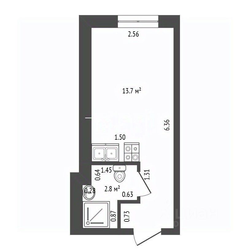 В продаже большой апартамент-студия 16,5 м2 с французским балконом и видом на Большую Невку!