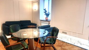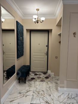 В квартире кухня-гостиная, две изолированные комнаты, совмещенный санузел. Перепланировка узаконена. Произведен качественный дизайнерский ремонт дорогими материалами. Сделана шумоизоляция стен и потолка. Старые полы были демонтированы, перекрытия очищены от шлака и мусора. В кухнегостиной и санузле установлен инфракрасный тёплый пол. Покрытие пола в комнатах и гостиной наборный паркет, в кухне и санузле плитка. Полностью заменена электропроводка. Подвод холодной/горячей воды в квартиру осуществляется через сменные фильтры грубой и тонкой очистки. Установлены счетчики воды. Окна - двухкамерные стеклопакеты, подоконники из мрамора. Предусмотрено общее, рабочее и акцентирующее освещение помещений квартиры.