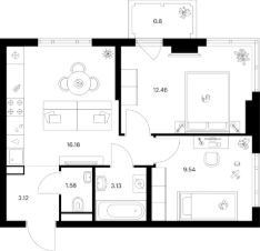 Продаётся 2-комн. квартира площадью 46,81 кв.м на 4 этаже 12 этажного дома (Корпус 4.2, Секция 1) проекта ПИК Таллинский парк. Светлый просторный подъезд на уровне земли, функциональная планировка, большие окна, без отделки.