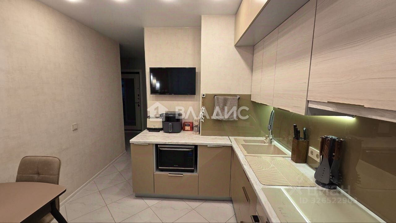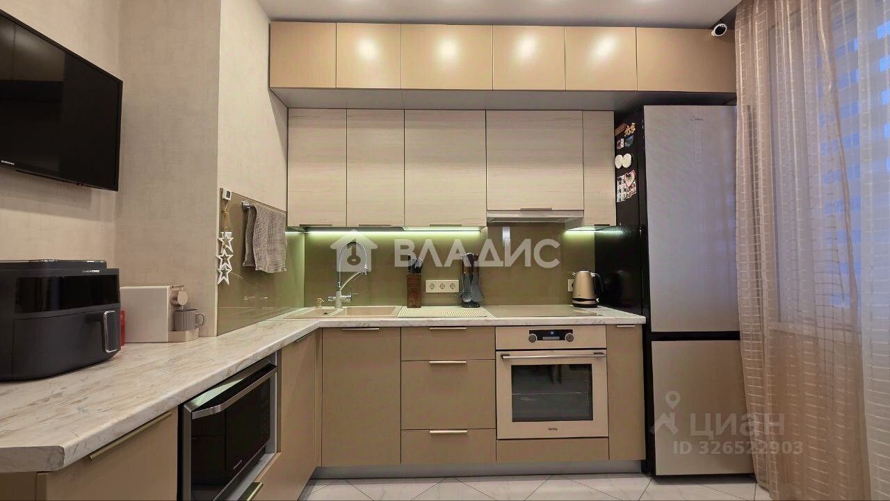 — Кухонный гарнитур изготовлен на заказ, качественная фурнитура с доводчиками, вcтpoeнная бытoвая тexника.