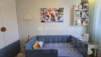 — Во взрослой спальне вместительный шкаф-купе, большая кровать с ортопедическим матрасом и выходом на лоджию. В детской комнате установлено освещение ручной работы на заказ (монгольфъеры), а так же римские шторы с тематическим принтом.