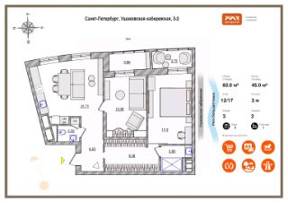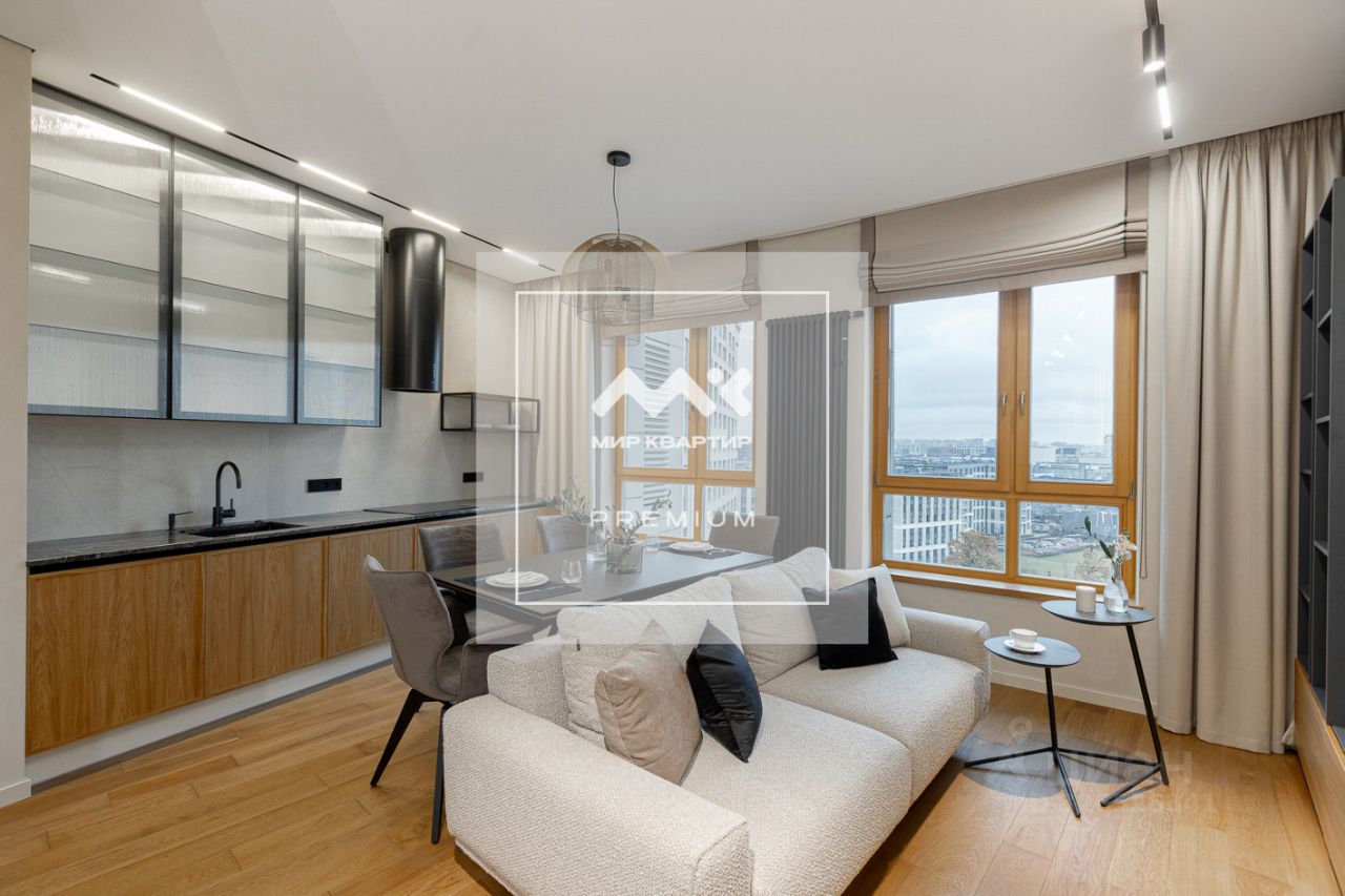 Светлая уютная квартира общей площадью 82 кв м (включая 2 утопленные лоджии с подогревом) расположена на 12 этаже 17-этажного корпуса "Омега". Планировка эргономичная с 2 изолированными комнатами и кухней-гостиной, потолки 3 м.