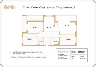 Детская - 18.5м²Спальня хозяиская - 42м² Гардероб хозяискии - 7м²Детская - 19.8м²Кухня-Гостиная - 72м²Постирочная - 1.5м²Санузел - 5.36м²Санузел гостевои - 5.5м²Общая S - 160м²