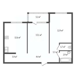 * Комнаты - 13.1/12.9 м²;