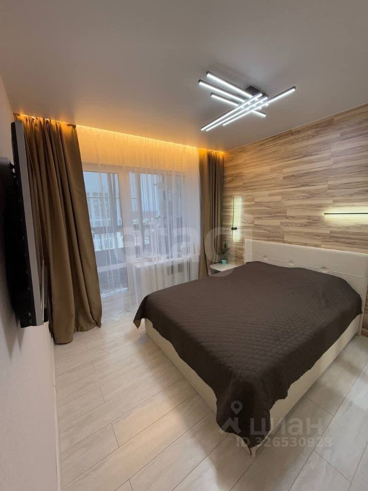 Спальня — имеет выход на лоджию; установлен электрокарниз с управлением через Алису, а также голосовое управление освещением.