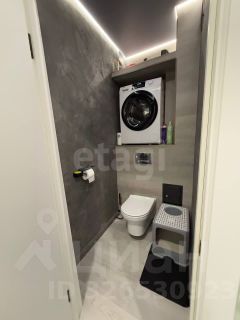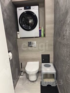 Туалет — оборудован нишей для стиральной машины, установлен подвесной унитаз; стены отделаны итальянской декоративной штукатуркой.