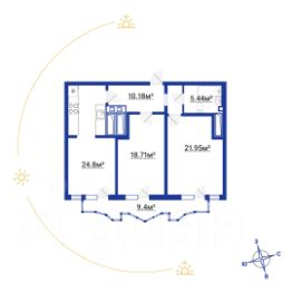 Планировка: В каждой комнате есть собственный балкон! Общая площадь с балконами — 90,6 кв.м, без балконов — 81,2 кв.м.