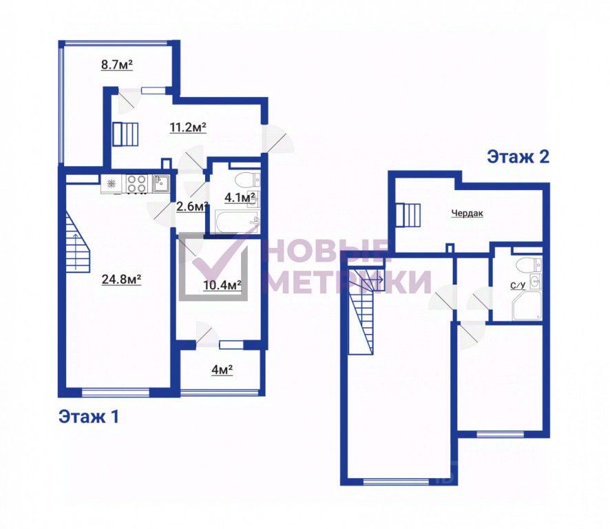 -Оригинальная 2-этажная планировка с высотой потолков 2,8 м создает ощущение простора и света.