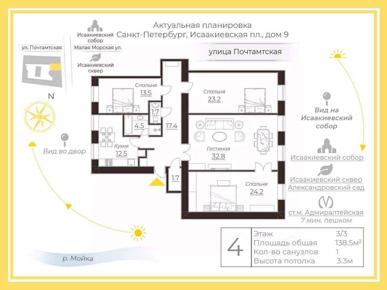 Из квартиры открывается вид на Исаакиевский собор.