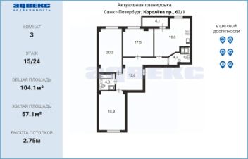 57,1 м²