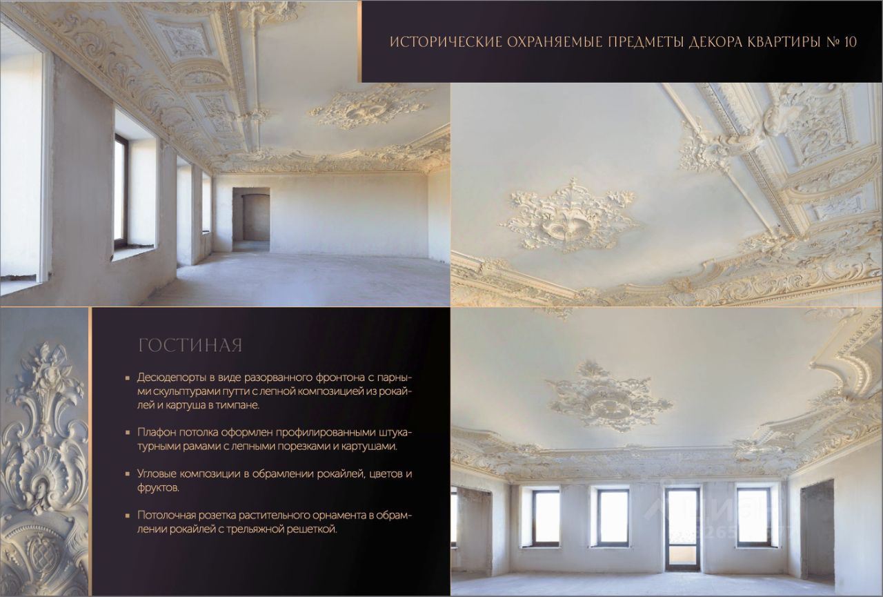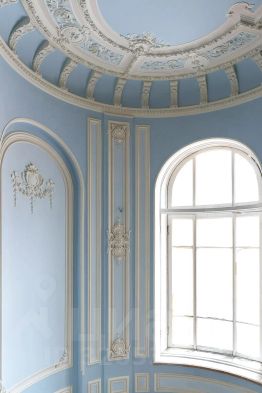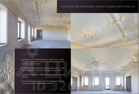 Интерьеры украшены восстановленной лепниной начала XX века, выполненной по оригинальным образцам.