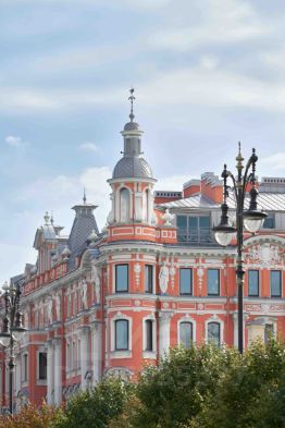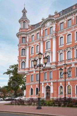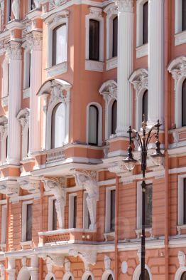 кариатиды, атланты, лепные барельефы, эркеры, балконы, высокие зеркальные окна с видами на Таврический сад.