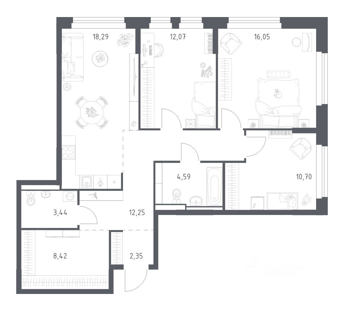 Строим кварталы для жизни с заботой о будущем. Предлагается 3-комнатная квартира комфорт-класса площадью 88,16 кв.м в корпусе 35.1 на 1-м этаже, в жилом комплексе "Новое Колпино".