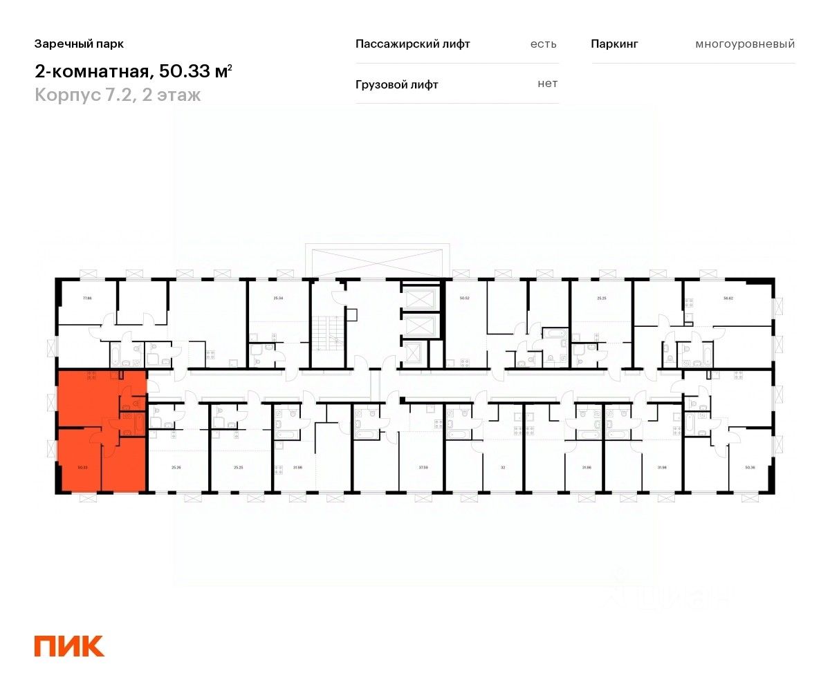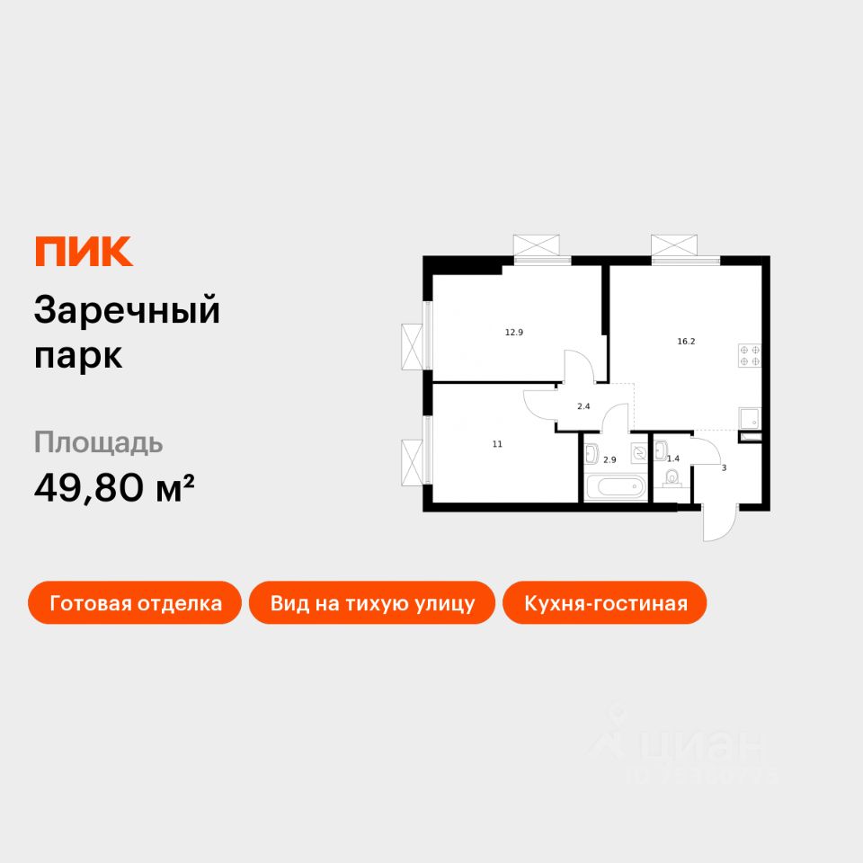 Продаётся 2-комн. квартира площадью 49,8 кв.м на 2 этаже 24 этажного дома (Корпус 7.2, Секция 1) проекта ПИК Заречный парк. Светлый просторный подъезд на уровне земли, функциональная планировка, большие окна, c отделкой.