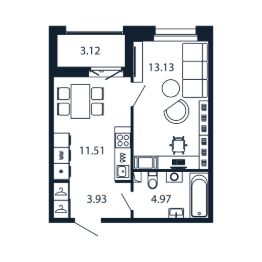 Прямая продажа от застройщика! Готовая Однокомнатная квартира 33 кв.м с кухней 11.51 кв.м с чистовой отделкой на 7 этаже в сданном ЖК "Полис Новоселье".