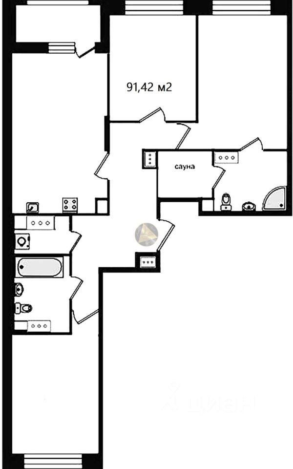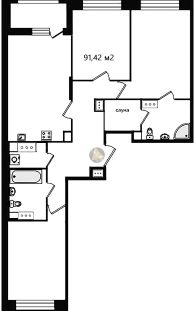 - Общая площадь квартиры 91,42 м2