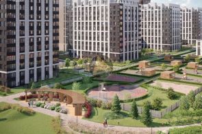 - На территории комплекса находится протяженный пешеходный променад, парк с площадками для занятий различными видами спорта, детские площадки, панорамные качели с видом на Неву.