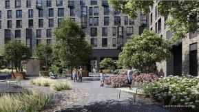 Три корпуса. Приватные дворы. В проекте предусмотрен детский сад. На первых этажах коммерческие помещения. Подземный паркинг.