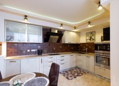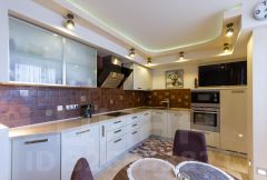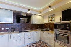 Дизайнерский ремонт. Установлена центральная система вентиляции. Все материалы импорт и качество. Плитка Италии, сантехника Франция и Германия, бытовая техника Германии, мебель Италия и Германия, пол натуральный паркет. На кухне стеклянные двери из пескоструя, привезены из Италии. Подоконники из натурального камня. Окна эркерные, отделка дерево. Стены: дизайнерская штукатурка, в комнатах вставки из римских обоев. Многие элементы дизайна сделаны на заказ. Есть потолочная подсветка. Электрика интересная, можно играть светом) Шкафы встроенные, вместительные. Есть скрытый сейф в квартире. Аквариум 500 л с экзотическими рыбами, вечером красиво работает подсветка, автокормушка, естественное увлажнение квартиры. Кухня, коридор и санузлы с подогревом пола. Стиральная машина Mile стоит в подсобном помещении с дверью, там же есть полки для хранения белья, есть свет. Ремонт делали для себя, один собственник, никогда не сдавалась.