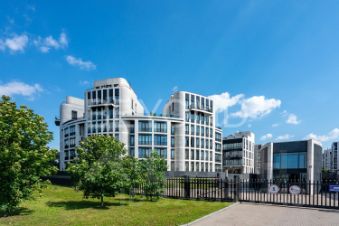 Внутренняя территория комплекса включает фонтан, прогулочные аллеи, спортивную и игровую площадки, ландшафтный дизайн. Два парковочных места в подземном паркинге дома включены в стоимость.