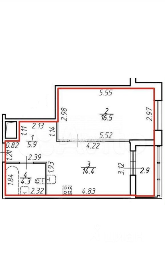 Просторная квартира общей площадью 41,1м2 с продуманной планировкой, обеспечивающей комфорт и функциональность