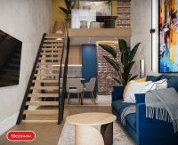 Мезонин - полуэтаж с большим количеством естественного света. На втором уровне можно организовать спальню или кабинет.