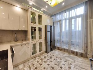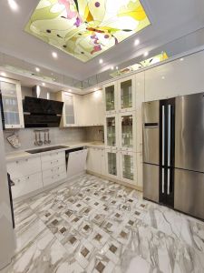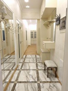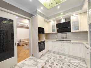 . В квартире произведён дизайнерский ремонт. Высокие потолки -3.2 м . По полу на четыре комнаты разведена отопительная система Зендер. Два санузла, один с душем ( 3.8 м2), другой с ванной ( 7,1 м2 ), полы с подогревом. В детской комнате ( 17,8 м2) - рельефная двухуровневая фреска. В спальне ( 18,4 м2 ) - вместительная гардеробная. Компактная кухня (11 м2 ) оснащена необходимой бытовой техникой. Уютная гостиная ( 19,7 м2 ) - прекрасное место для семейного отдыха и приёма гостей. Отдельный кабинет (10, 1 м2 ) обеспечивает изолированное пространство для работы. 3 кондиционера ( гостиная , кабинет, спальня ). Поверхность пола- паркетная доска 12 мм из краснодарского дуба.