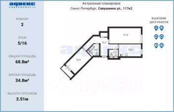 Ищете светлую, просторную и удобную квартиру для жизни в Приморском районе Санкт-Петербурга, в пешей доступности от метро? Отличный вариант — двухкомнатная квартира на 5 этаже с хорошей планировкой, раздельными комнатами и всем необходимым для комфортной жизни.
