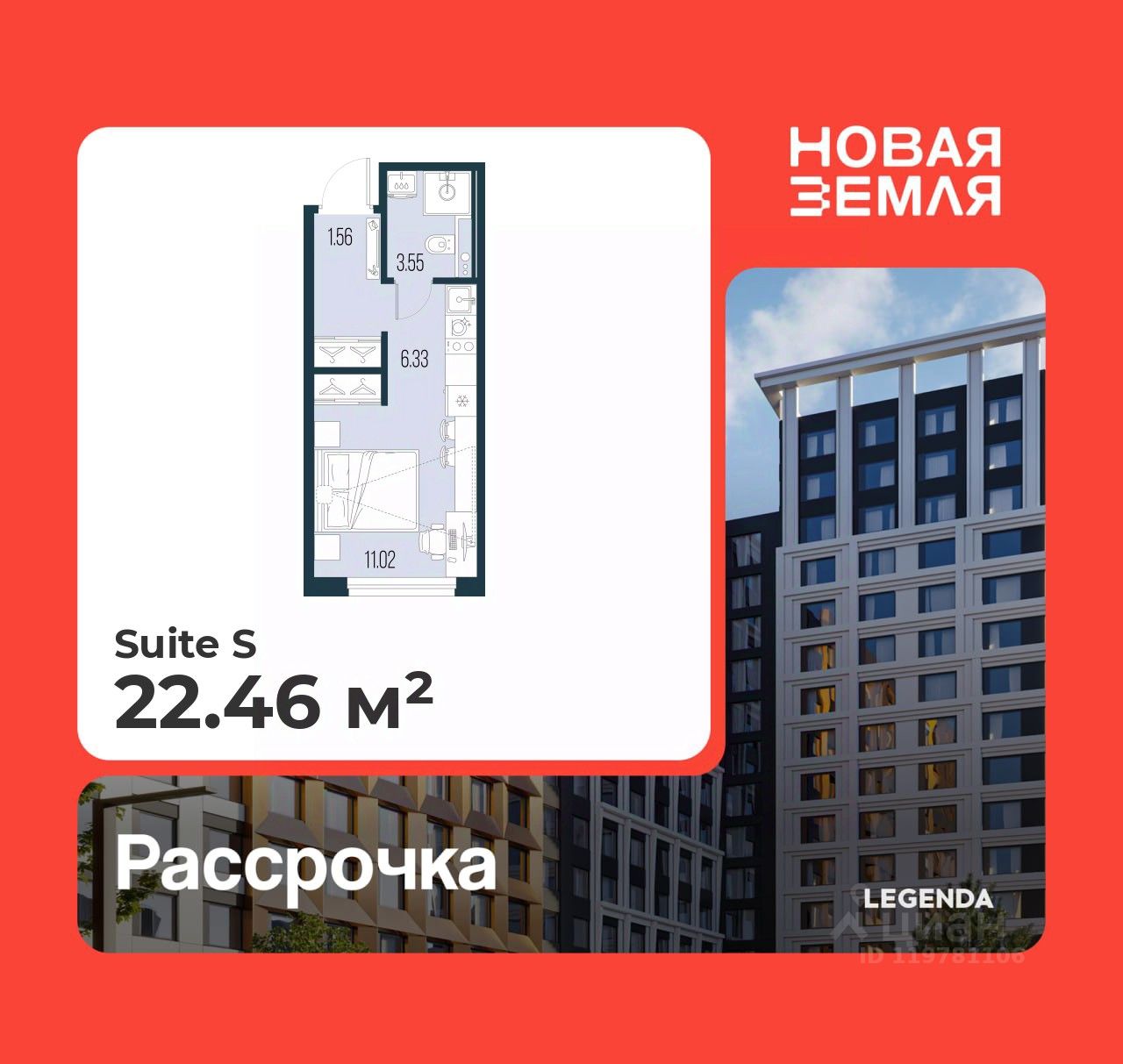 1-комн. квартира-студия с предчистовой отделкой в ЖК "Новая Земля" на 14 этаже. Общая площадь: 22.46 кв.м., площадь гостиной 17.35 кв.м., из которых 6.33 кв.м. выделено под кухонную зону. Все окна выходят на одну сторону. В квартире один совмещенный санузел. Высота потолков 2.85 м.