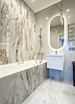Выполнен качественный ремонт из дорогостоящих материалов (делали для себя). Много света, пастельные тона, стиль разрабатывала дизайнерская компания.