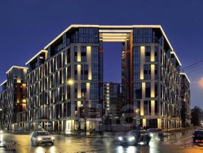 У комплекса закрытая территория, во дворе детская площадка, есть детская комната, по периметру камеры, охрана, двухуровневый подземный паркинг со спуском на лифте.