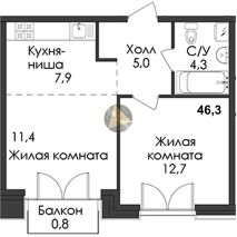 - Общая площадь квартиры 46.3 м2