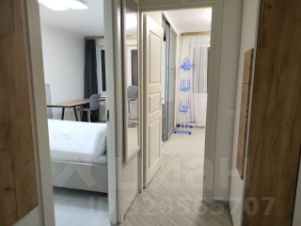 В квартире современный ремонт в нейтральных тонах, что позволяет поиграть с декором, если хочется добавить яркости в пространство, либо наслаждаться спокойной обстановкой без визуального шума. Между кухней и комнатой стеклянная матовая перегородка, в комнате вместительный стеклянный шкаф-купе с зеркалом в потолок и удобной системой хранения. Также в квартире остается кухонный гарнитур, техника обсуждается.