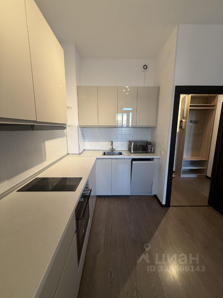 В квартире покупателям в подарок остается мебель: современная кухня со встроенной техникой, в комнате 2 двуспальная кровать и вместительный шкаф, в прихожей шкаф для хранения вещей, и одежды.