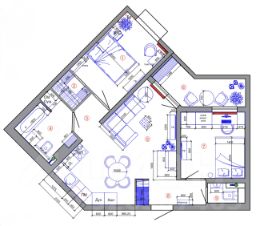 Современный дизайнерский ремонт. В кухне-гостиной и санузлах остается вся мебель и техника, наполнение спален остается частично. В комнате, где организована детская ранее находилась мастер-спальня (добавила фото в конце объявления), под размещение кровати организовано световое решение. Вторая комната может быть дополнительной спальней или кабинетом. Кухонный гарнитур со всей необходимой встроенной техникой. Изначальное планировочное решение с растановкой мебели прикреплено в объявлении.