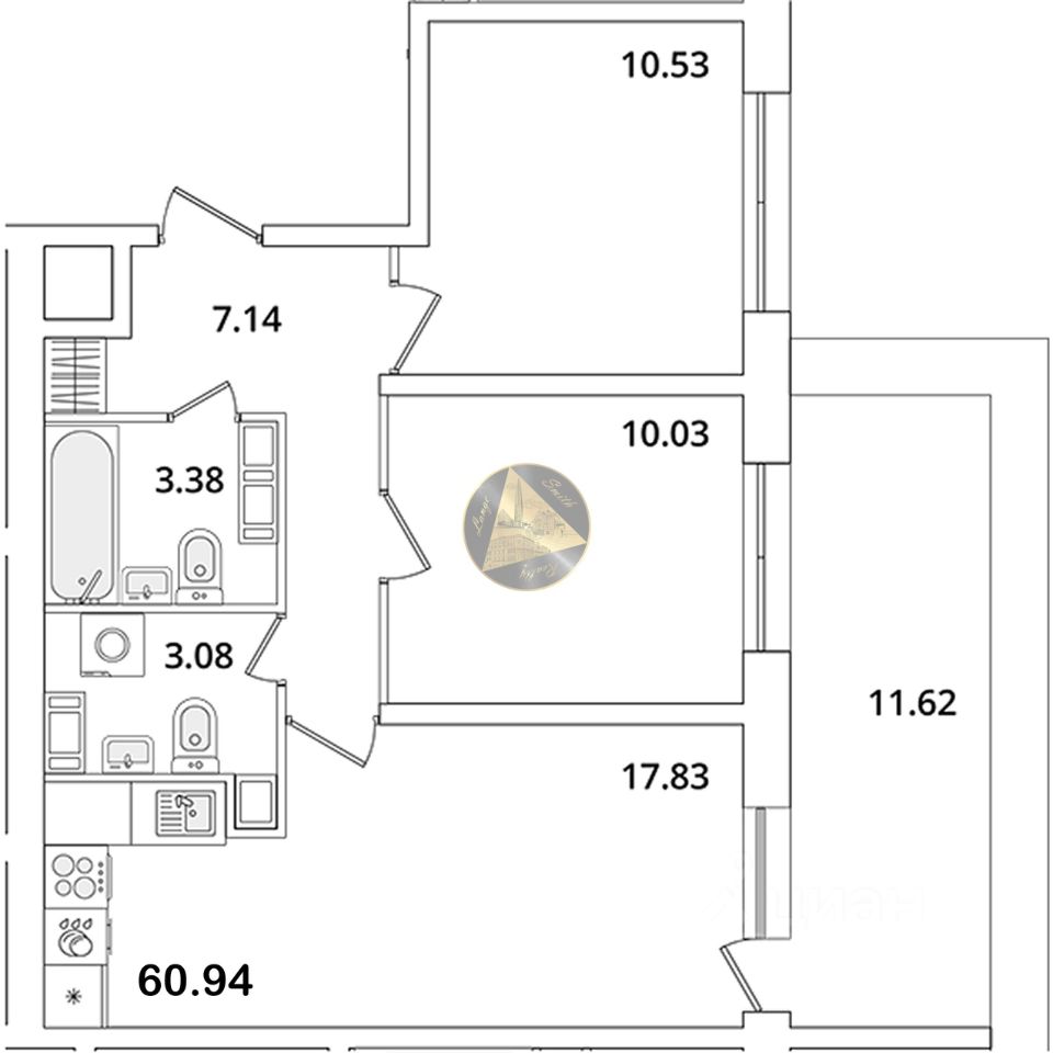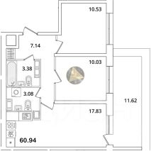 - Общая площадь квартиры 60.94 м2