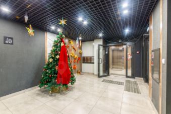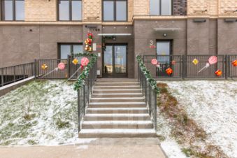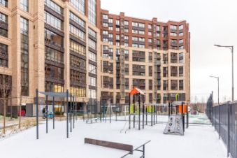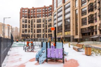 Придомовая территория благоустроена: выложена тротуарная плитка, высажены газоны и цветники, посажены деревья, выполнен ландшафтный дизайн с применением геопластики. Во дворе оборудованные детские площадки из дерева, спортивные площадки и воркаут зоны. для занятия игровыми видами спорта обустроен стадион. Для автовладельцев предусмотрен подземный паркинг, в который можно спуститься на лифте.