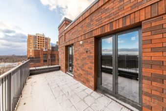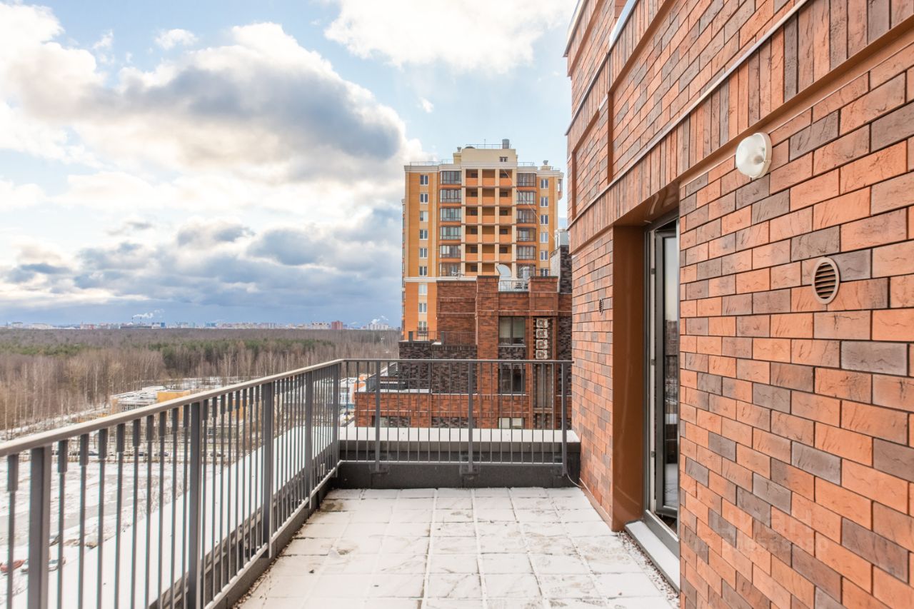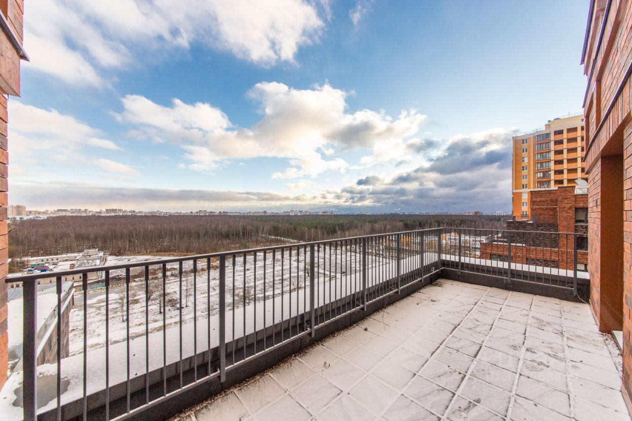 Продается евро-4-комнатная квартира с собственной террасой на последнем этаже с прямым видом на парк Сосновку в жилом комплексе "Листва". Дом построен полностью из кирпича.