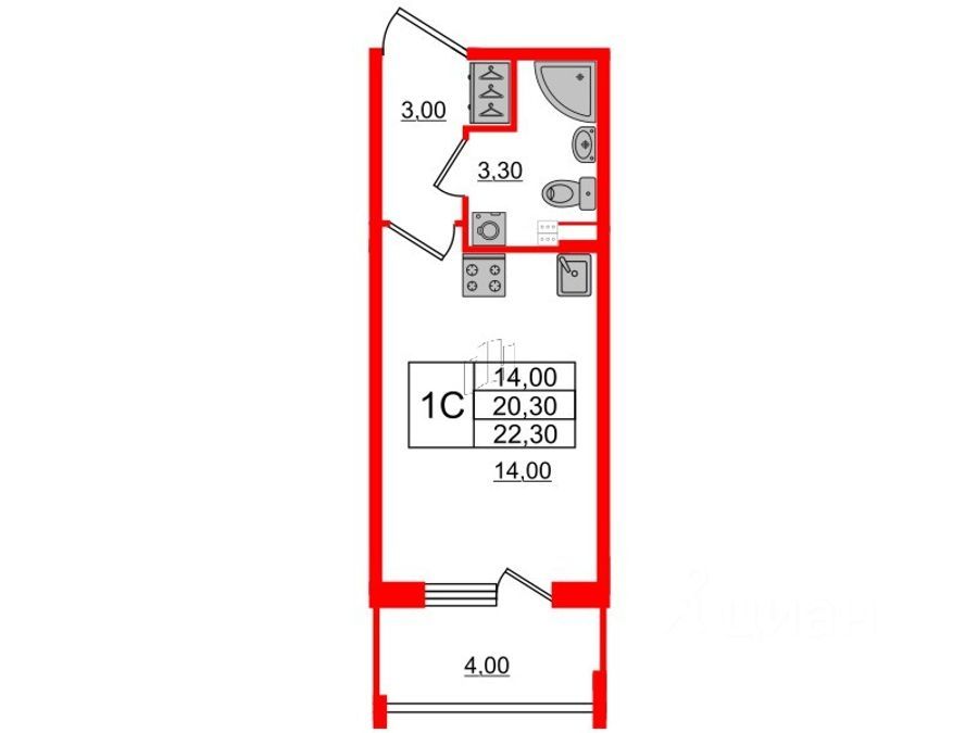 22,3 м²