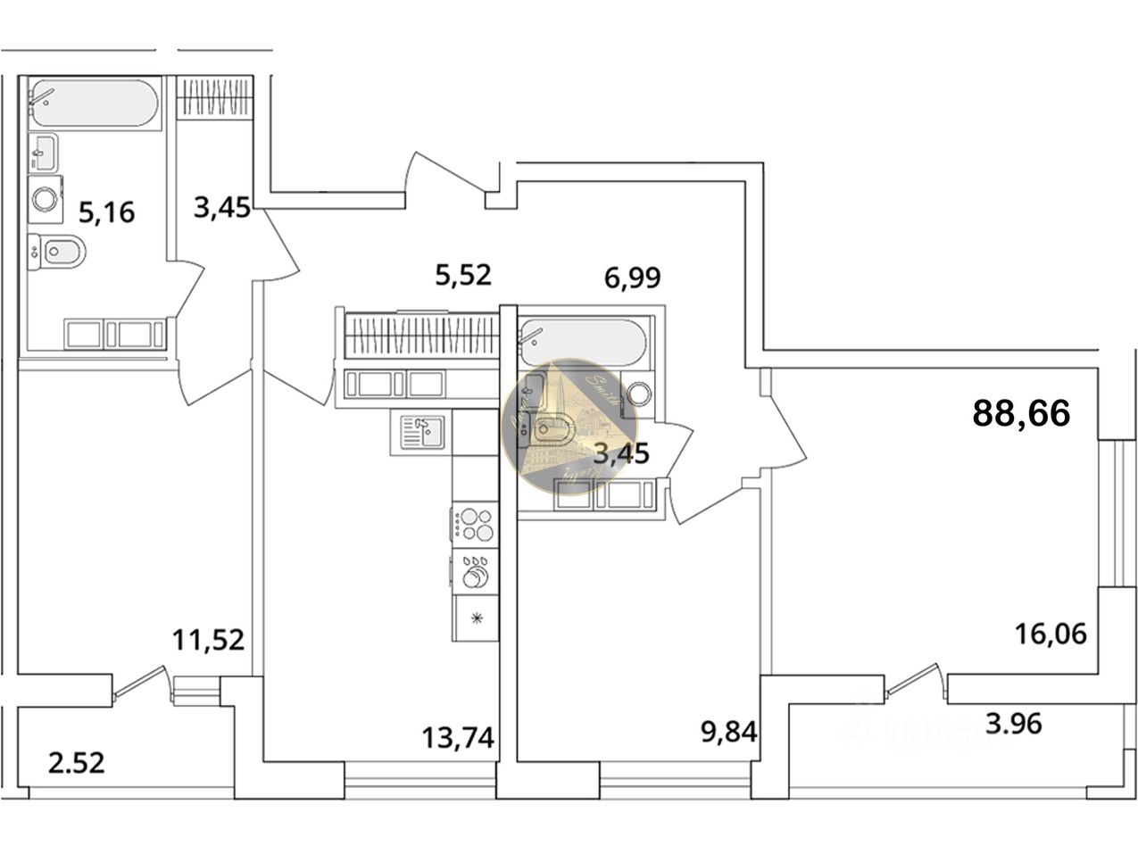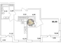 - Общая площадь квартиры 88.66 м2