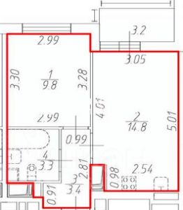 Жилая комната ПРАВИЛЬНОЙ ФОРМЫ 9.8 м2.