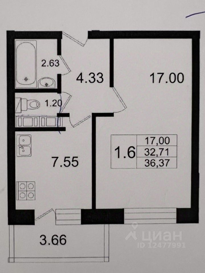 Комната 17 м.кв. и кухня 8 м.кв. с выходом на большой застекленный балкон. Вид из окна приятный, обозревается поселок. Утром в квартире солнечно, к вечеру солнышко уходит и нет жары.