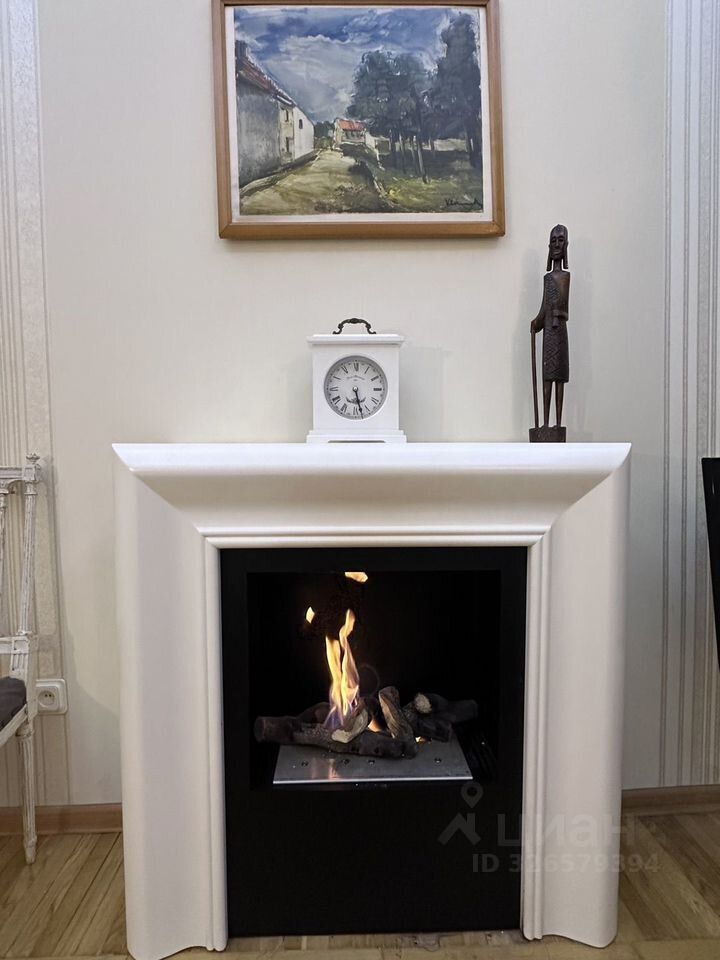 Камин в спальной комнате, (где сделан свежий дизайнерский ремонт) который создаёт уют в зимние вечера.
