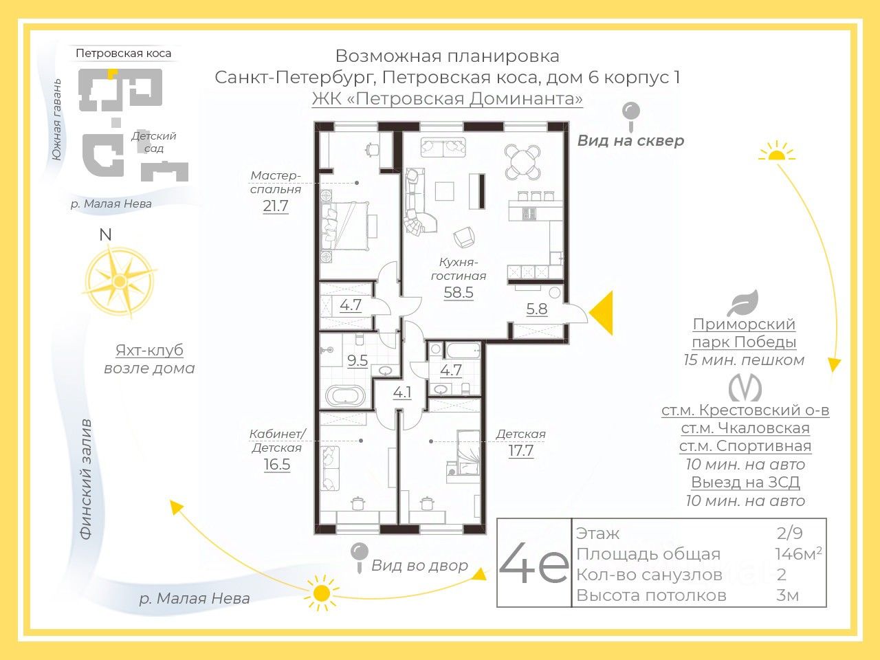 Арт. 129028715 Уникальная семейная квартира с тремя спальнями, продуманной эргономикой и зонированием. Второй такой нет на всём Петровском острове!