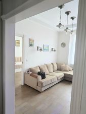 Высота потолков - 3 м. Очень большие и высокие окна.