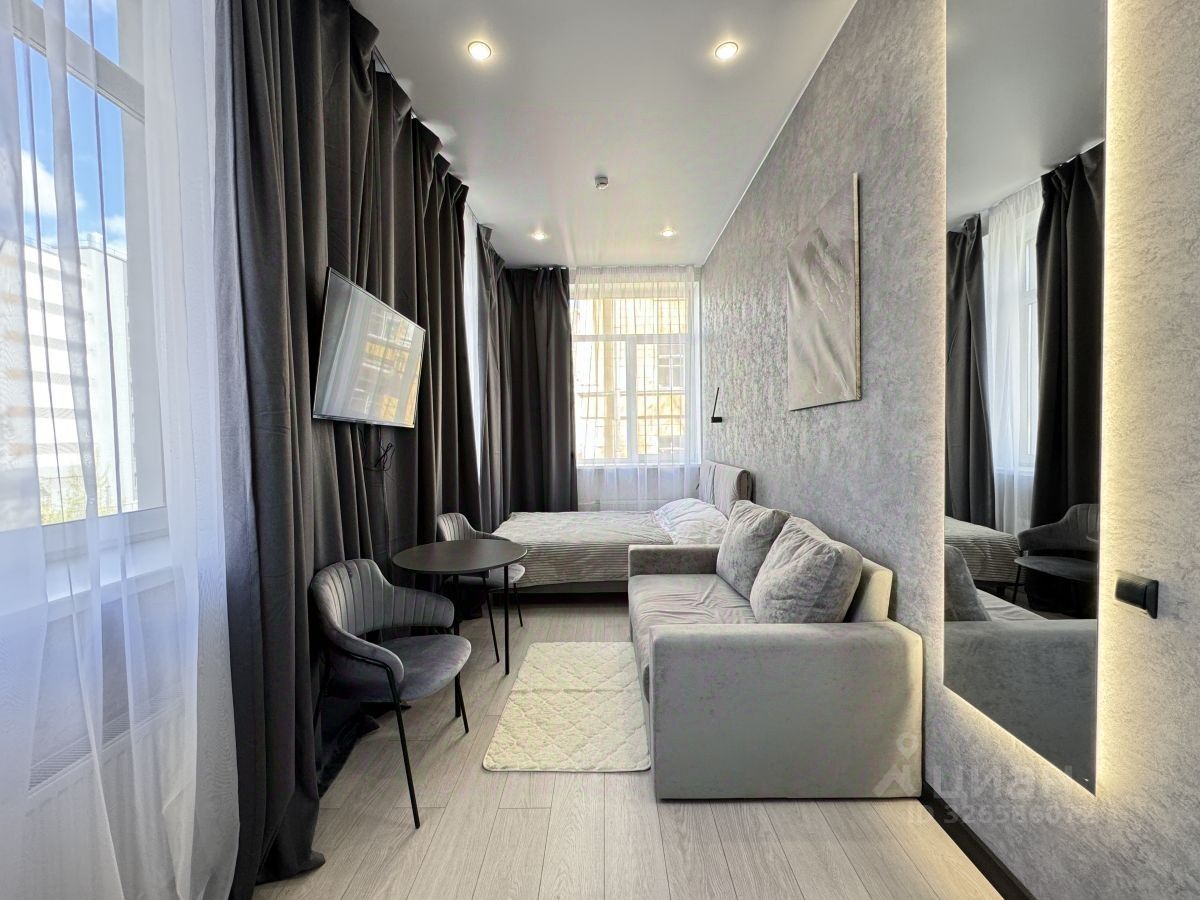 В продаже отличная студия 19.2 кв. метров с эргономичной планировкой. Светлая, три окна позволяют зонировать использование, окна во двор - вид на зелень, нет шума. Полностью готова к проживанию: укомплектована мебелью, техникой, текстилем, посудой.