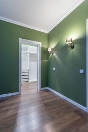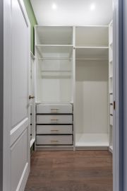 Натяжные потолки установлены во всей квартире, кроме обеих гардеробных комнат.