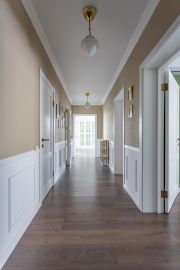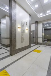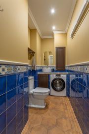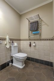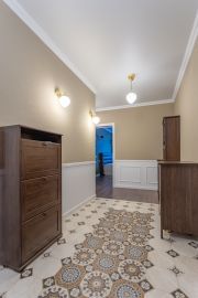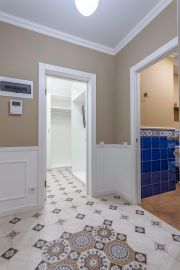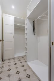 В квартире два санузла, один из которых оборудован ванной, просторная лоджия, две отдельные гардеробные с встроенными системами хранения, в прихожей пол с подогревом.