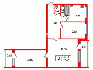57,2 м²
