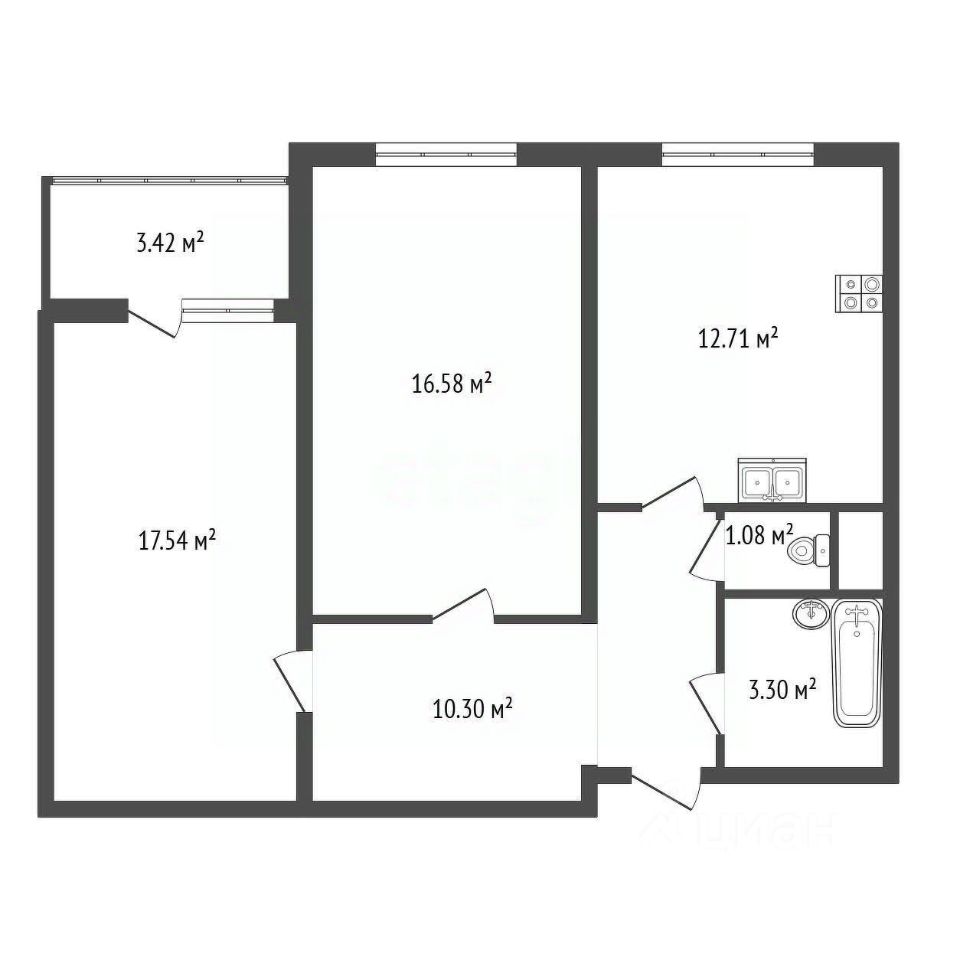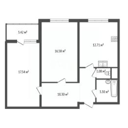 Изолированные комнаты 17,5 и 16,5 м² — отличный вариант для семьи или тех, кто хочет отдельное рабочее пространство.